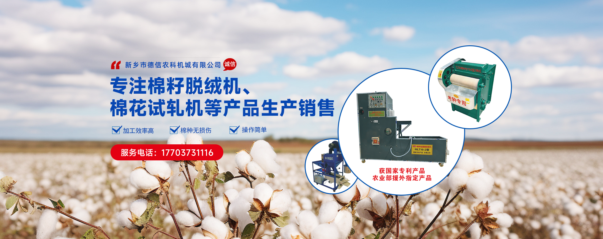 新鄉(xiāng)市德信農(nóng)科機(jī)械有限公司,成立于2018年,位于河南省新鄉(xiāng)市紅旗區(qū)洪門鎮(zhèn)。毗鄰107國道、京港澳高速公路、高鐵站、汽車東站,地理位置十分優(yōu)越、交通便利,四通八達(dá)。 是一家專注于各種農(nóng)業(yè)科研育種加工等機(jī)械及配件的開發(fā)、生產(chǎn)裝配和銷售,服務(wù)為一體的企業(yè)。公司主要產(chǎn)品有種子脫粒機(jī),棉花軋花機(jī)、棉花試軋機(jī),米子棉清理機(jī)、棉子脫絨機(jī),種子精選機(jī)六大系列及各種配件等。產(chǎn)品注重于經(jīng)濟(jì)性、廣泛適應(yīng)性和可操控性,以精湛的技術(shù)力量。良好的企業(yè)信譽,得到廣大新老客戶的好評。 企業(yè)始終以用產(chǎn)滿意為目標(biāo),以人為本、創(chuàng)新為先、質(zhì)量優(yōu)先、持續(xù)改進(jìn),竭誠服務(wù)、終身維護(hù)的質(zhì)量管理方針;從創(chuàng)新技術(shù),生產(chǎn)銷售產(chǎn)品,提供服務(wù)為企業(yè)宗旨。堅持“用戶優(yōu)先、服務(wù)為本”的經(jīng)營準(zhǔn)則,確保用產(chǎn)使用時放止順心稱心